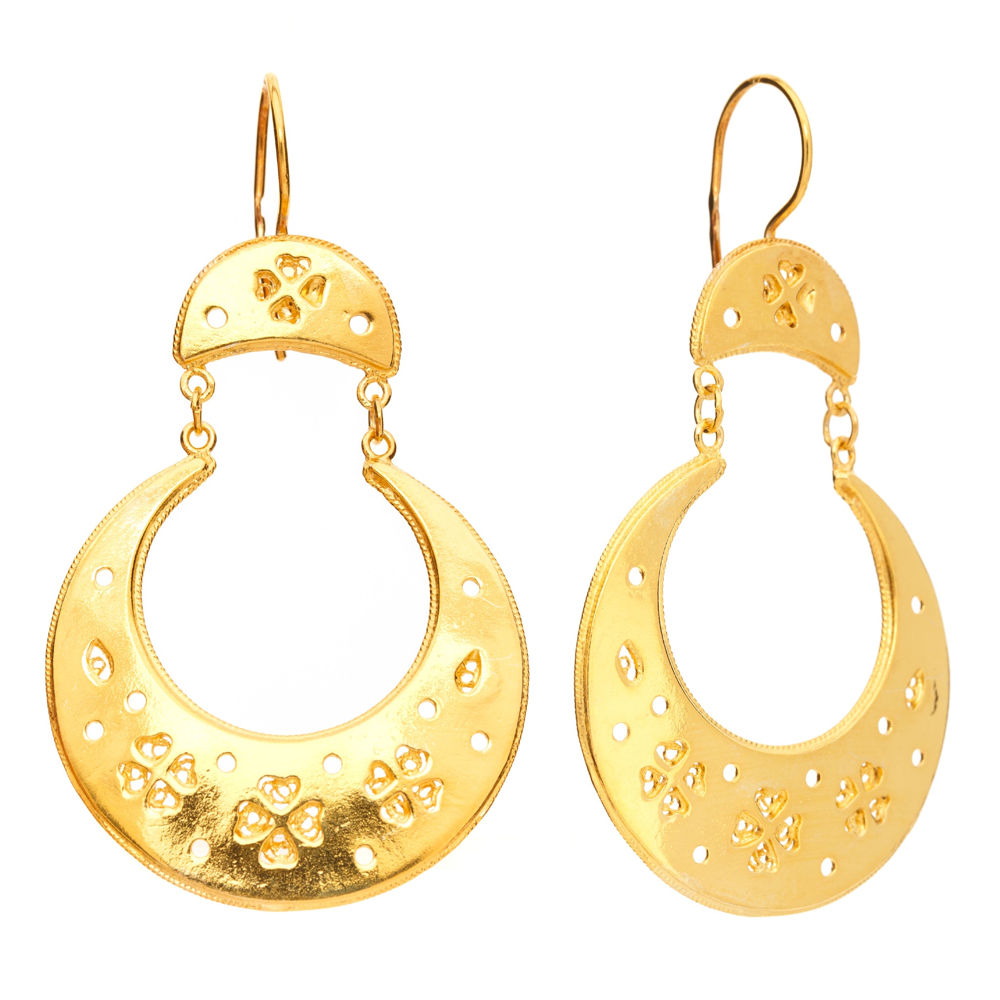Unlike traditional filigree, these earrings are meticulously cast from sterling silver and plated with radiant 24k gold, exuding a bold yet refined charm.