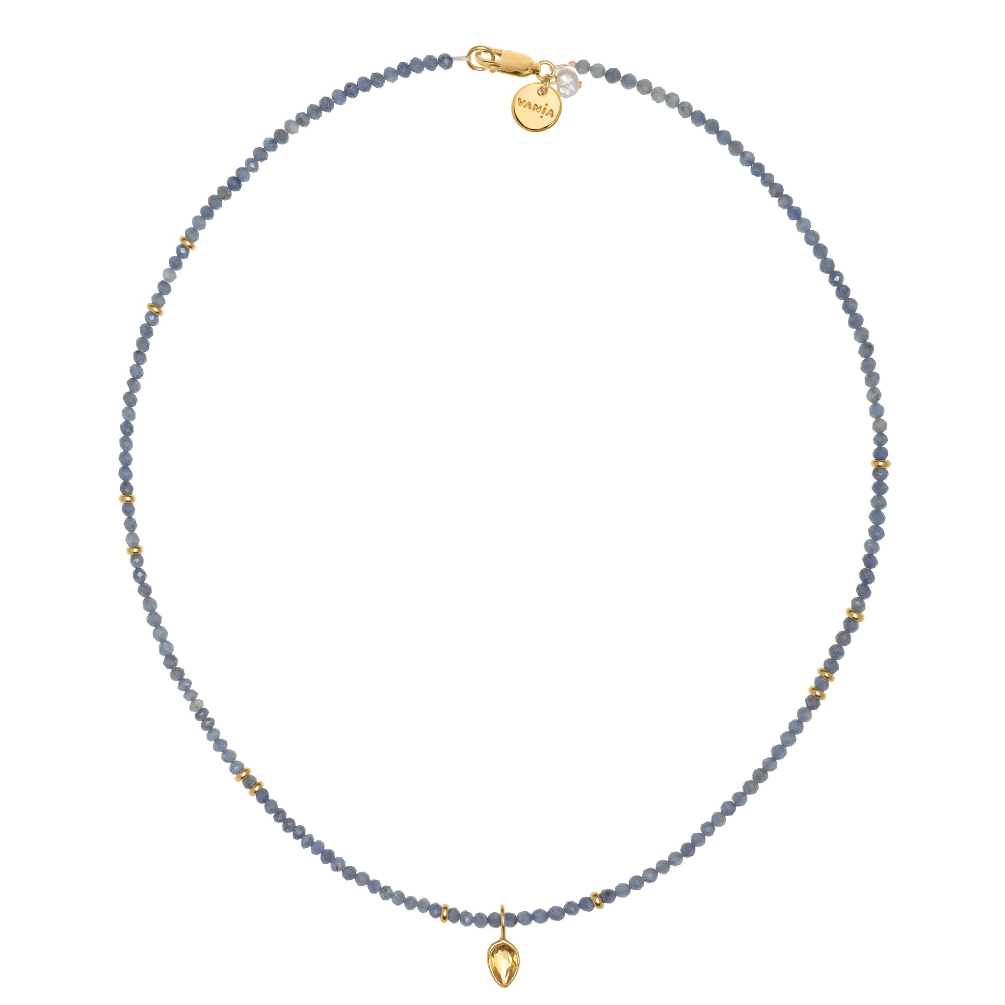 Indulge in celestial elegance with the Ethereal Sapphire Necklace adorned with a captivating Citrine droplet charm mounted on a vermeil bezel. Wear it as a reminder of the boundless beauty of nature or gift it to someone special, letting them carry a little bit of magic close to their heart. The gentle droplet charm, reminiscent of a golden sun, elegantly contrasts against the deep azure of the natural sapphires.
