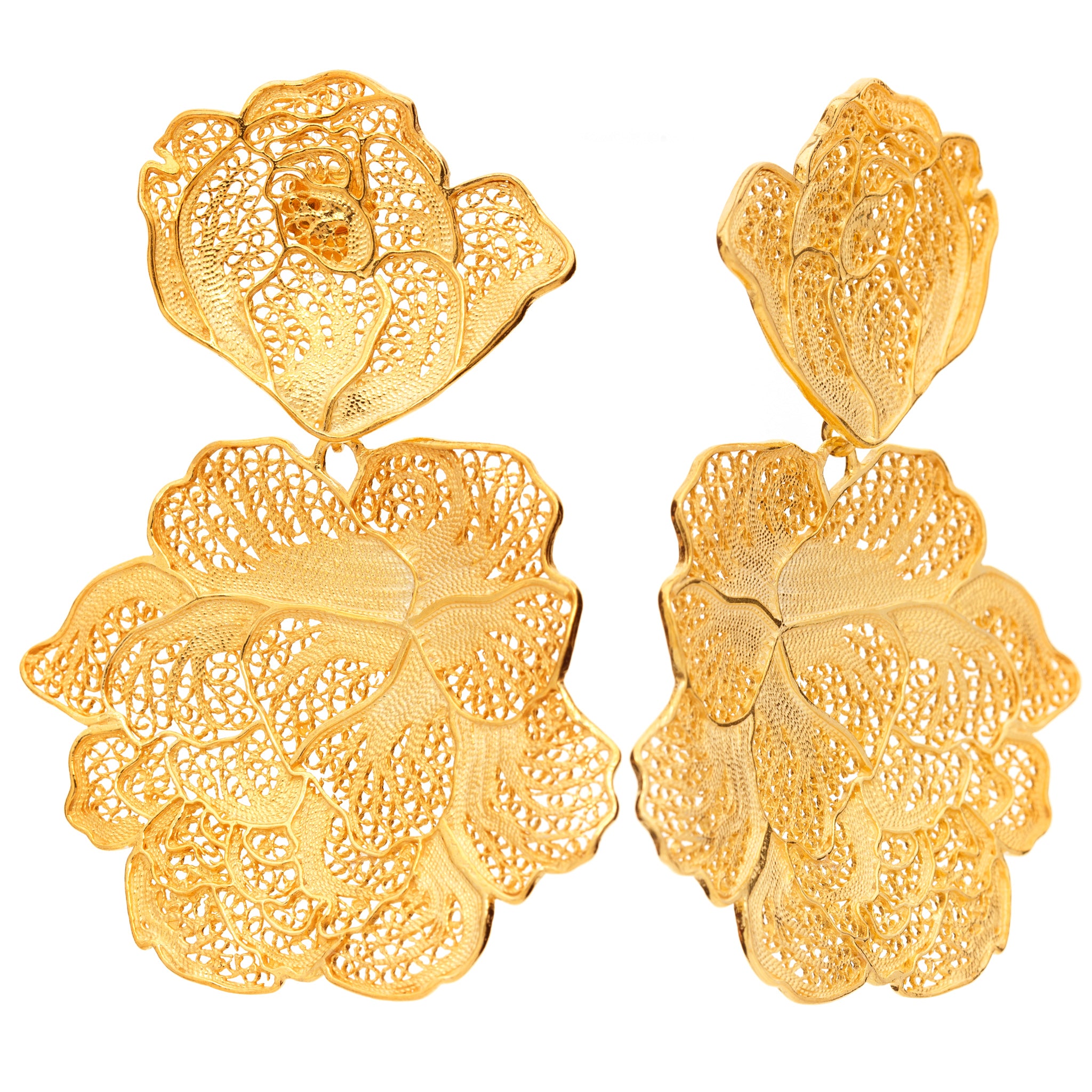 Combining delicate detailing with a dramatic silhouette, the Flores Earrings are perfect for elevating special occasions or adding a touch of glamour to your everyday look. Handcrafted by skilled artisans in Portugal, each pair comes with a certificate of authenticity, ensuring its heritage and timeless beauty.