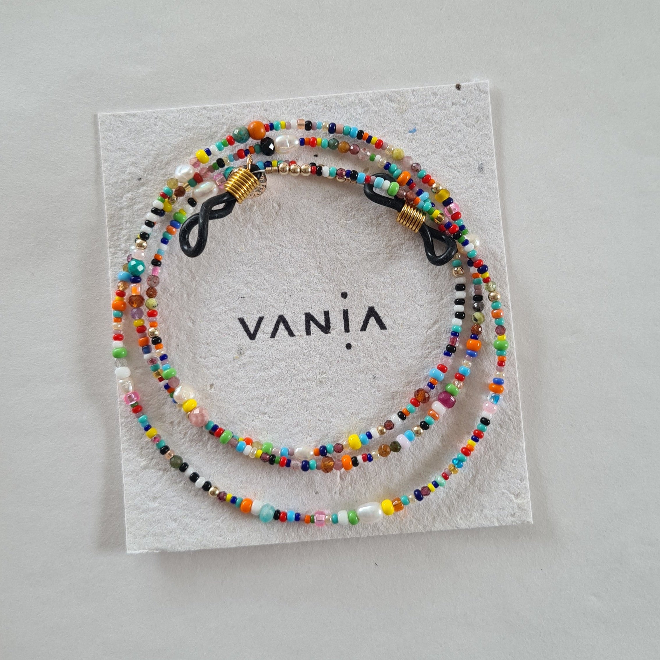 Bright, beaded, and unapologetically FUN — these sunglass chains bring the holiday mood wherever you go. Hand-strung with a mix of glass beads, gemstones, and pearls, they’re the perfect blend of playful and polished. Clip them to your favourite frames and turn every sunny moment into a little style statement.