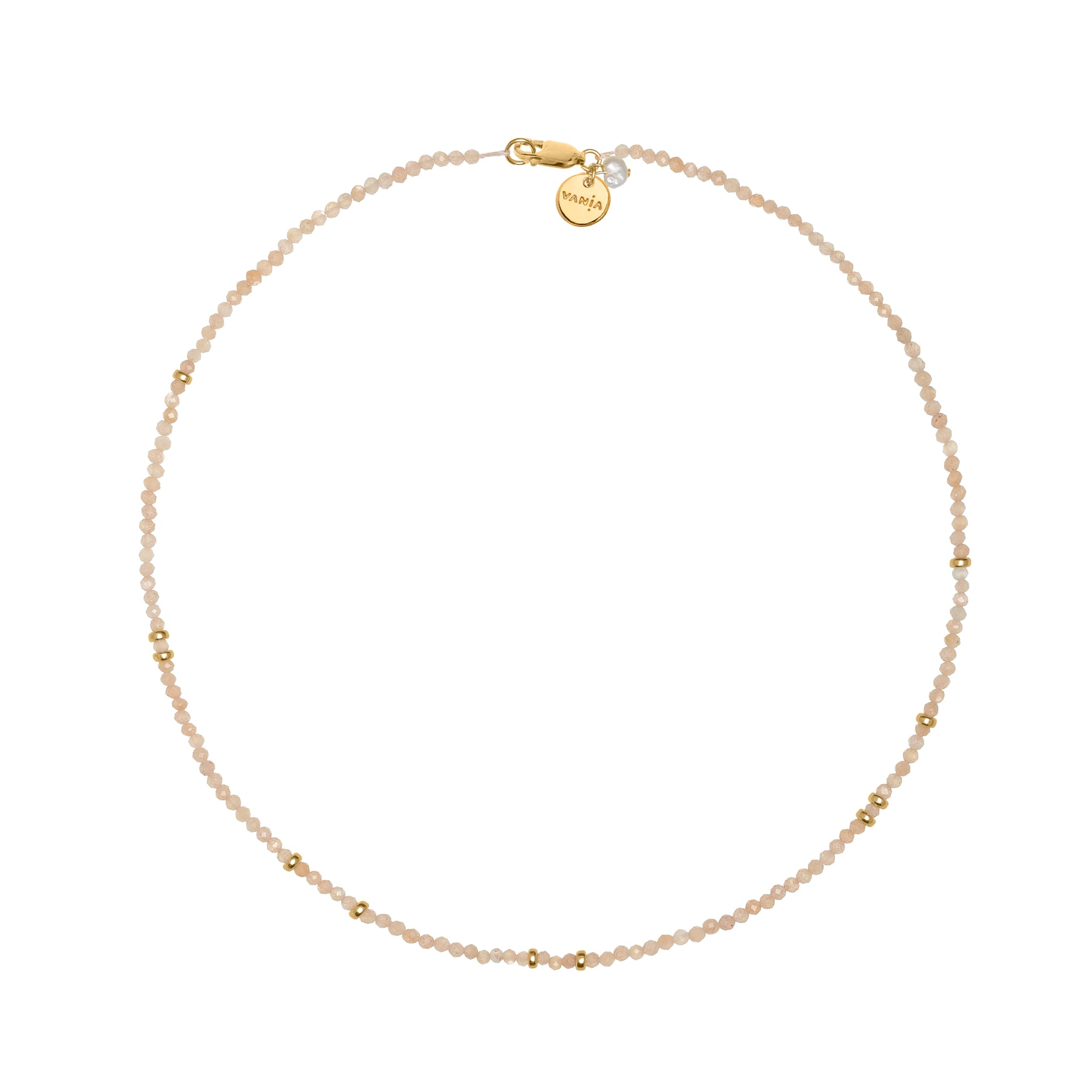 The Mystical Moonstone necklace mixes the captivating shade of tiny natural moonstone beads with glistening gold-filled accents for a touch of elegance.