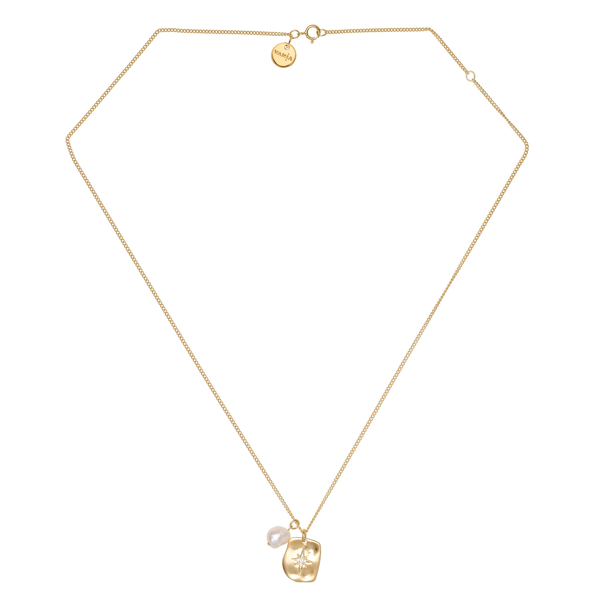 This stunning necklace features a cubic zirconia pendant that shimmers as you take her on your adventures. Handmade in NZ utilizing 14ct gold-filled chain & freshwater pearl charm.